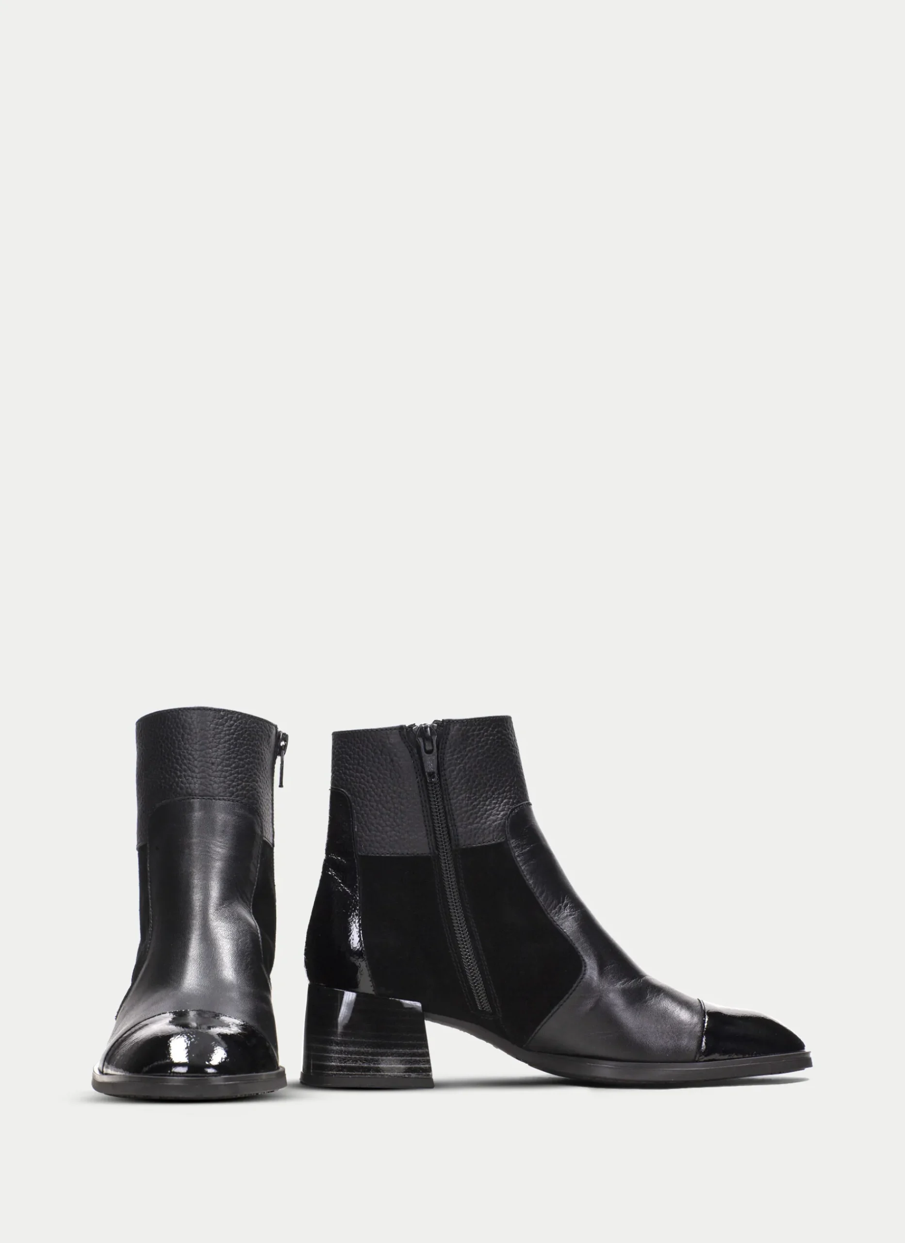 Botín Hecho En Combinación De Materiales. Punta Redonda, Tacón Bloque Y Cierre De Cremallera En El Lateral Interior. Este Zapato Incorpora La Tecnología Triflow, Amortigua Cada Paso Aportando Flexibilidad Y Confort En La Pisada, Gracias A Su Triple Almohadillado.