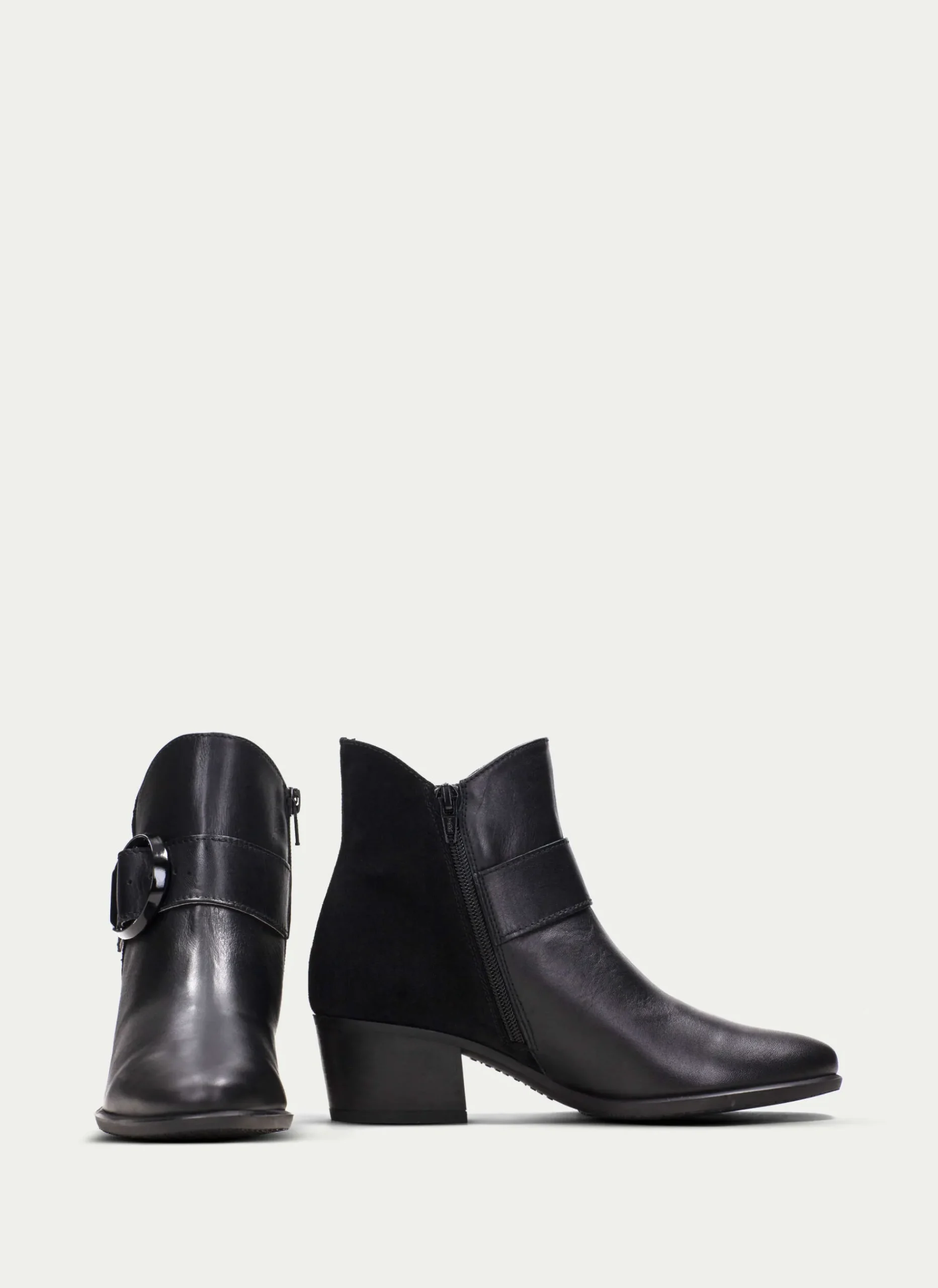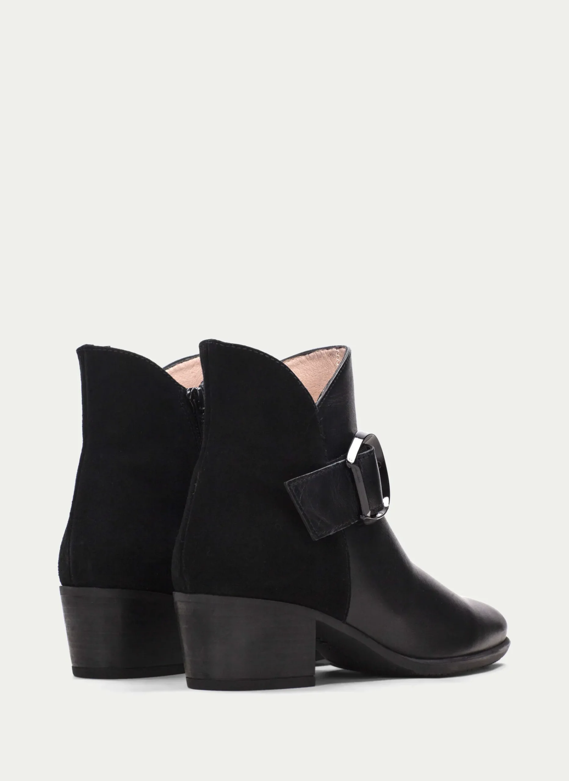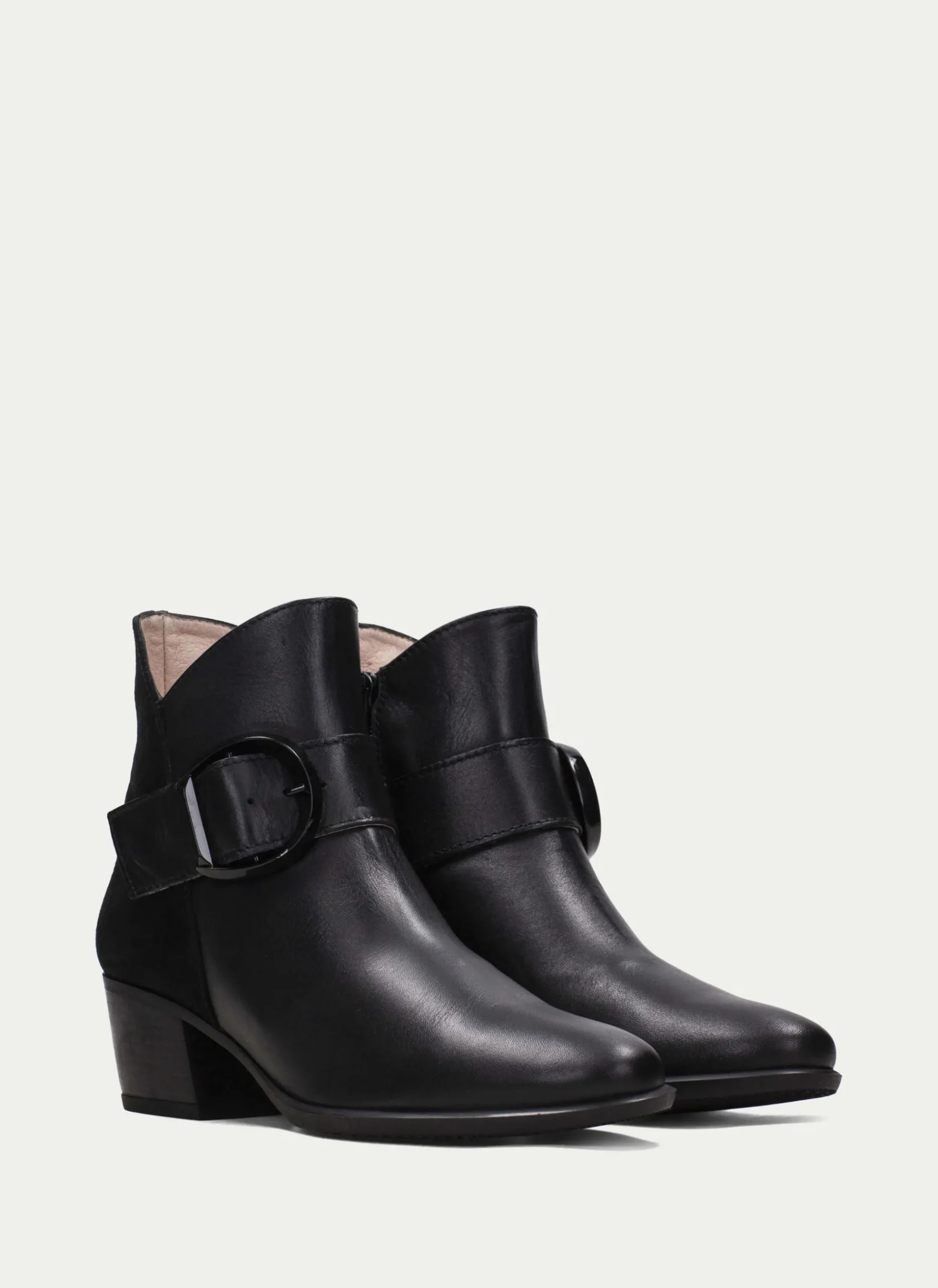 Botín De Piel Con Tacón Bloque, Detalle De Maxi Hebilla En El Lateral Y Cierre De Cremallera En La Parte Interior. Este Zapato Incorpora La Tecnología Triflow, Amortigua Cada Paso Aportando Flexibilidad Y Confort En La Pisada, Gracias A Su Triple Almohadillado.