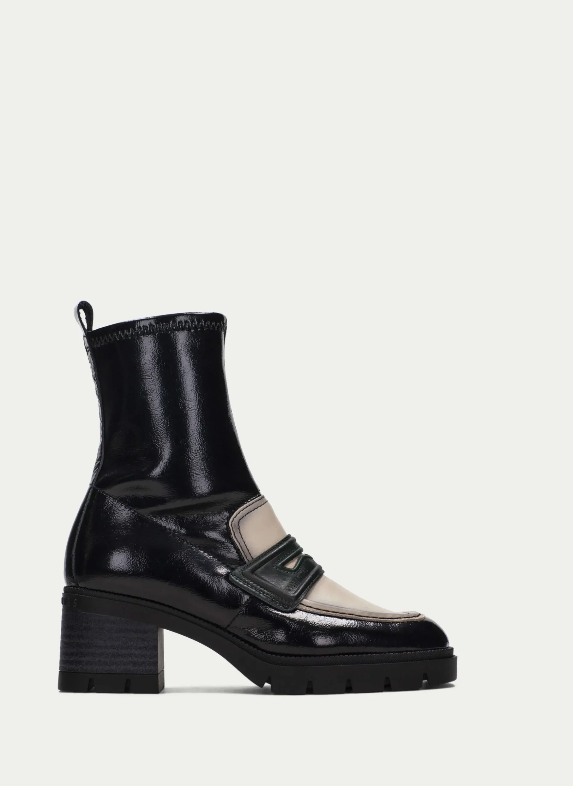 Botín Con Punta Redonda, Tacón Bloque De 6,5Cm De Altura Y Piso Track. Detalle De Antifaz En El Empeine Estilo Mocasin. Este Zapato Incorpora La Tecnología Triflow, Amortigua Cada Paso Aportando Flexibilidad Y Confort En La Pisada, Gracias A Su Triple Almohadillado.