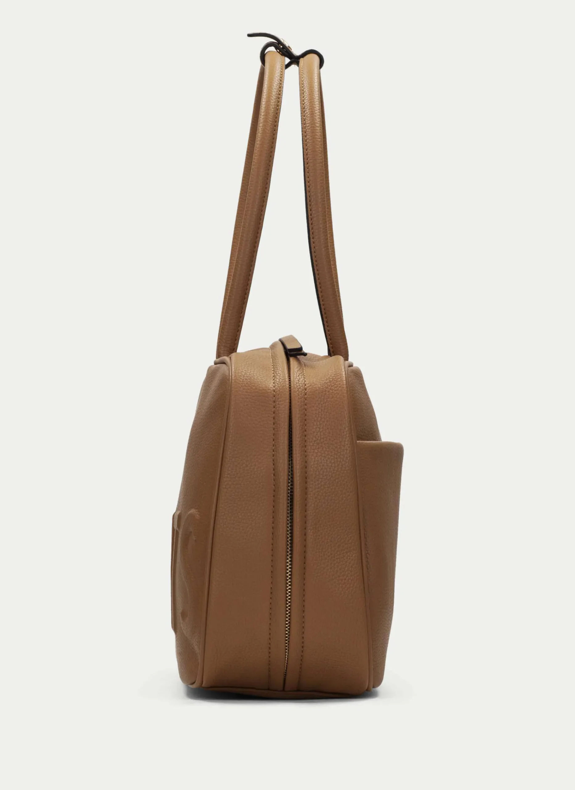 Bolso De Piel Estilo Bowling Perfecto Para Usar En El Día A Día. Un Diseño Sofisticado Y Versátil Con Un Compartimentode Gran Tamaño, Cierre De Cremallera Y Logo En Relieve En La Parte Delantera Del Bolso.
