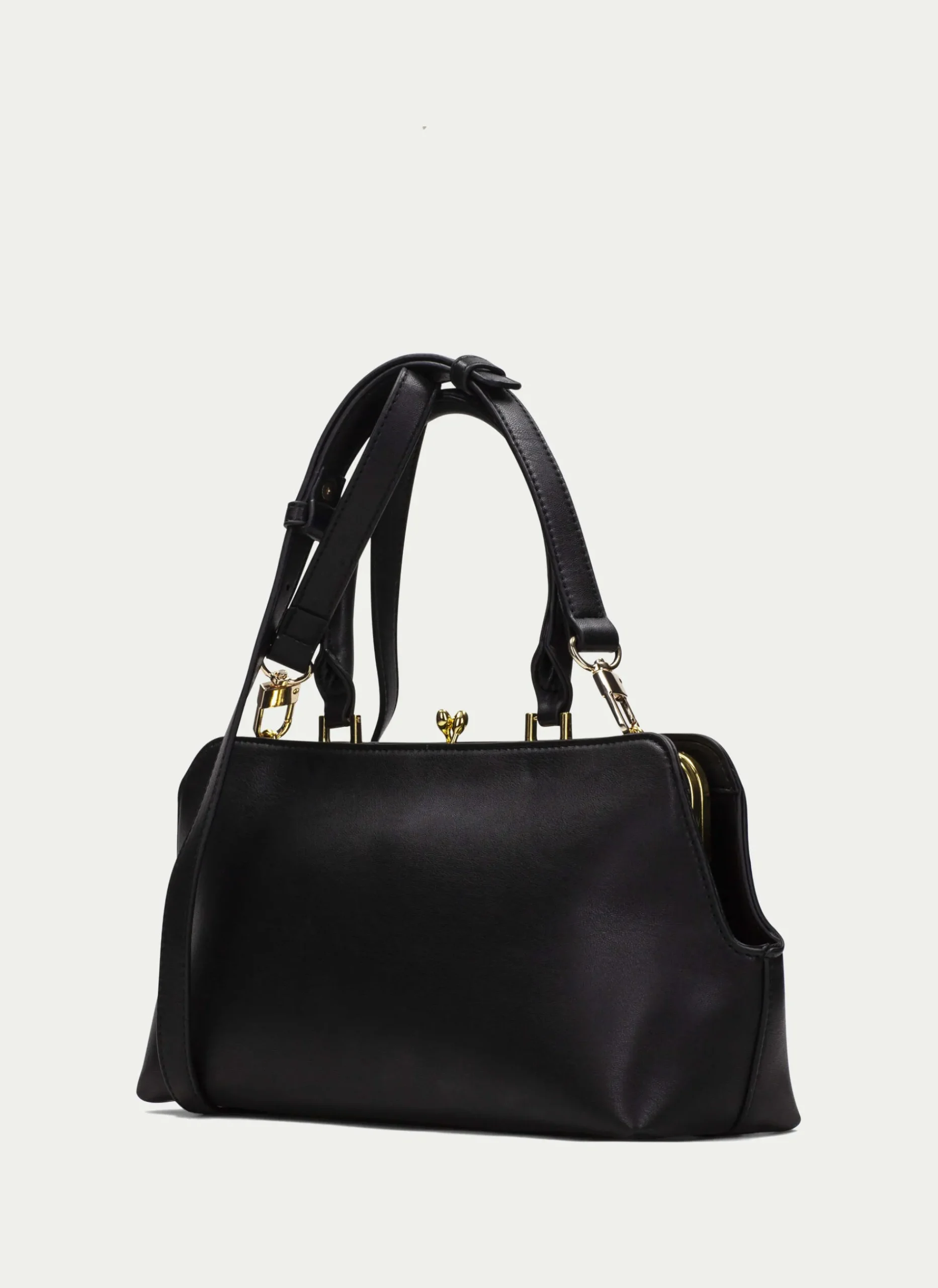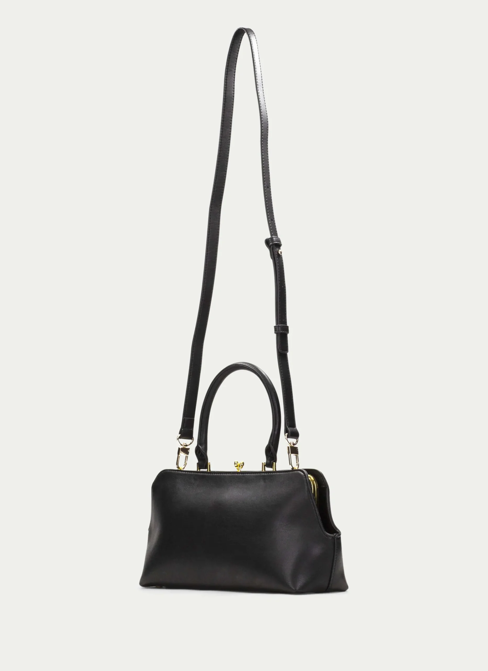 Bolso Mediano Con Cierre Tipo Broche. Doble Asa, Una Para Colgar Al Hombro Y Otra Bandolera Regulable Extraíble. Cuenta También Con Un Bolsillo Interior Con Cierre De Cremallera.