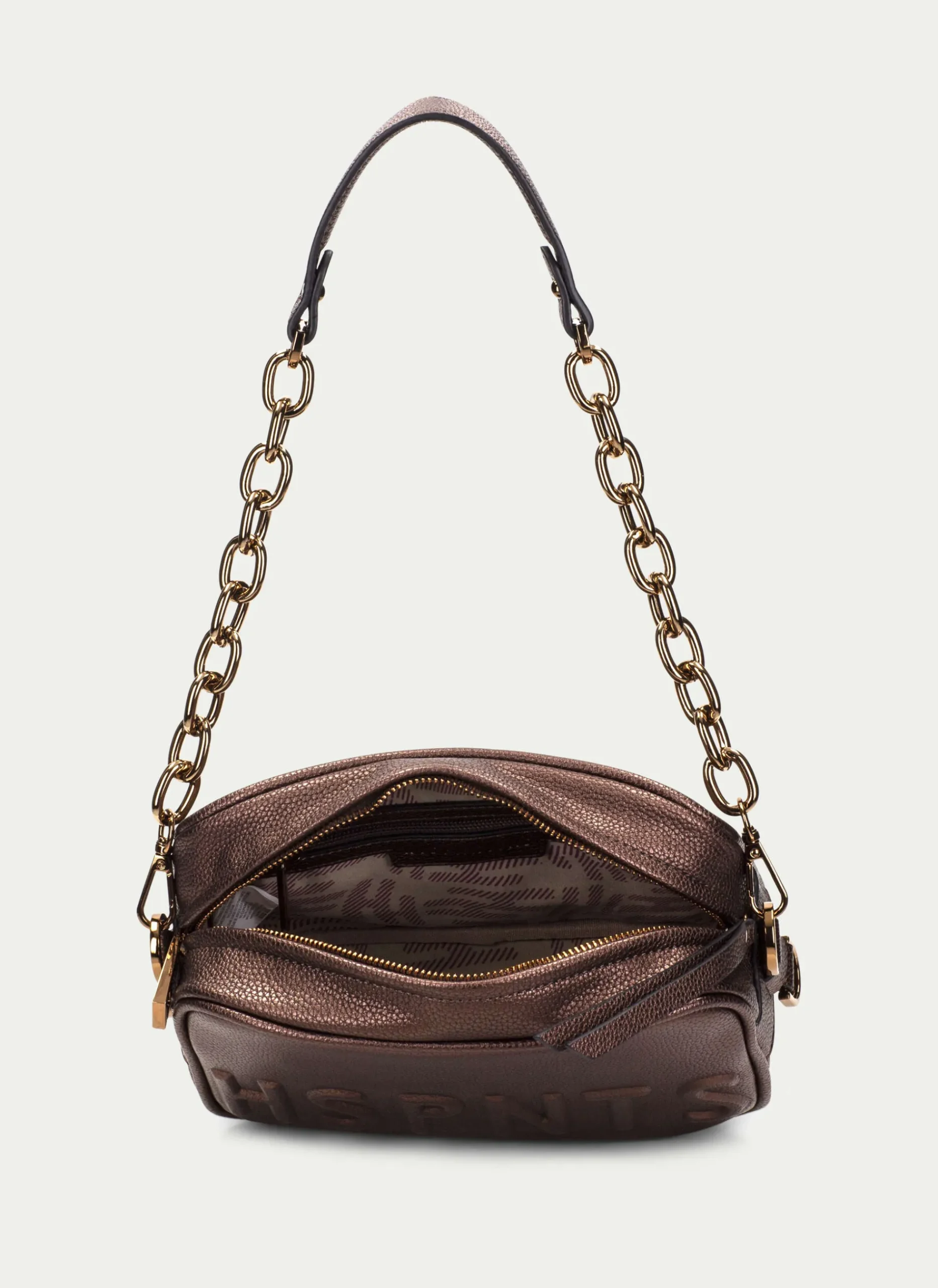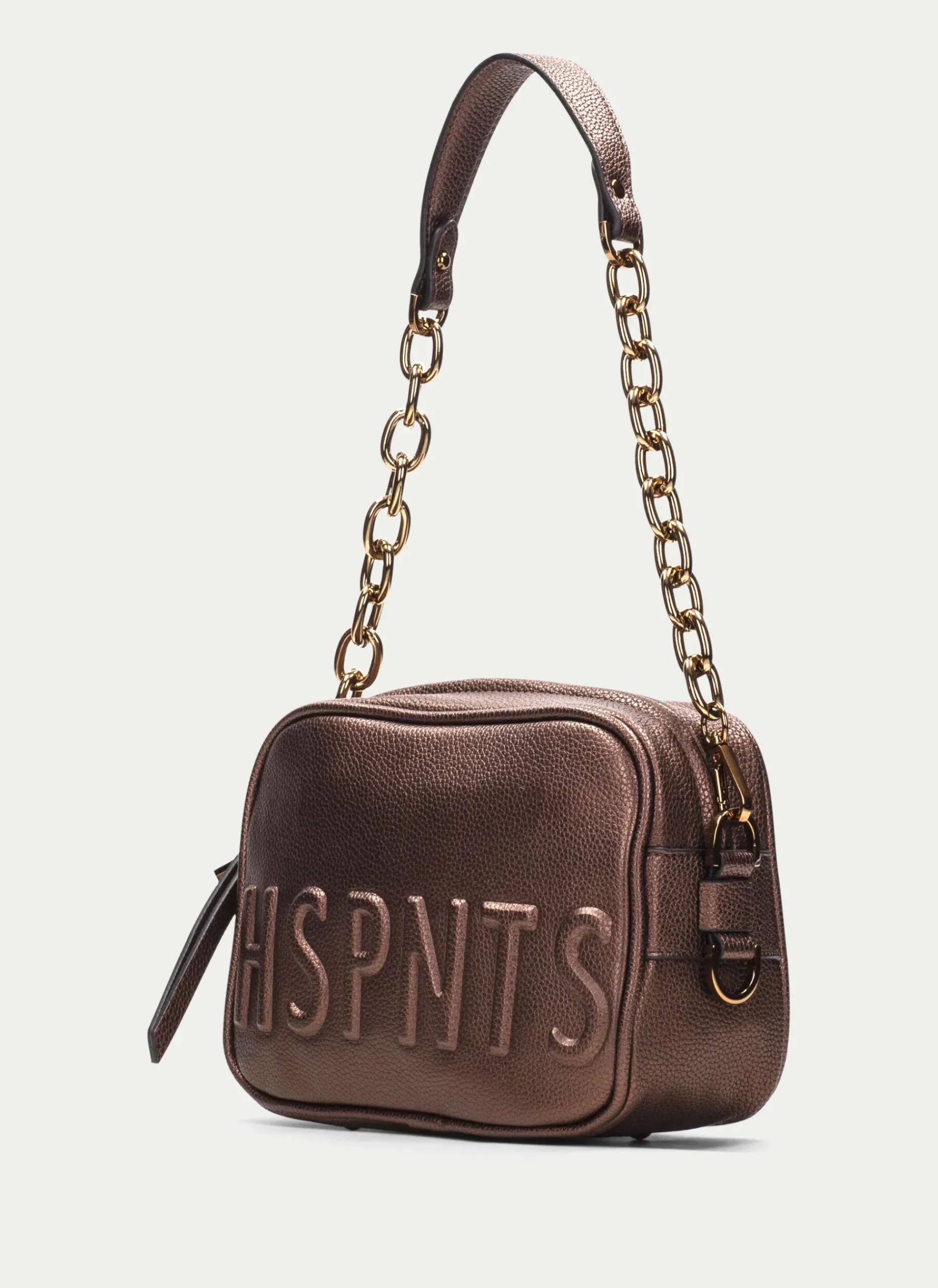 Bandolera Pequeña Con Nombre De La Marca En Consonantes Hspnts En Relieve En La Parte Frontal. Incorpora 2 Asas, Una Larga Modulable Con Altura Máxima De 72 Cm Desde El Hombro Y Detalle De Logotipo Y Otra Con Cadena Combinada. Cuenta Con Un Compartimento Interior De Gran Capacidad Y Un Cierre De Cremallera Ámplio.