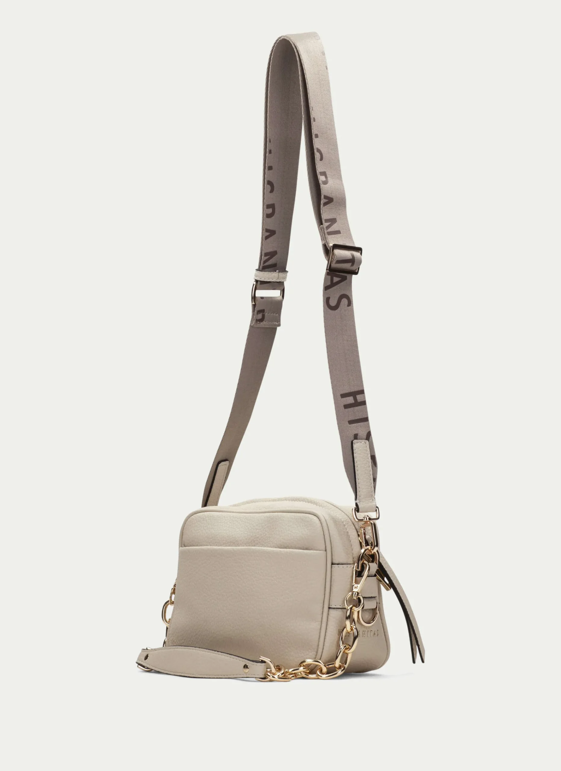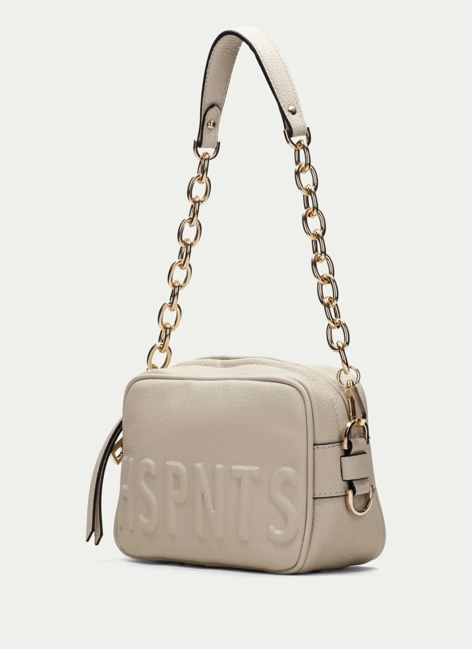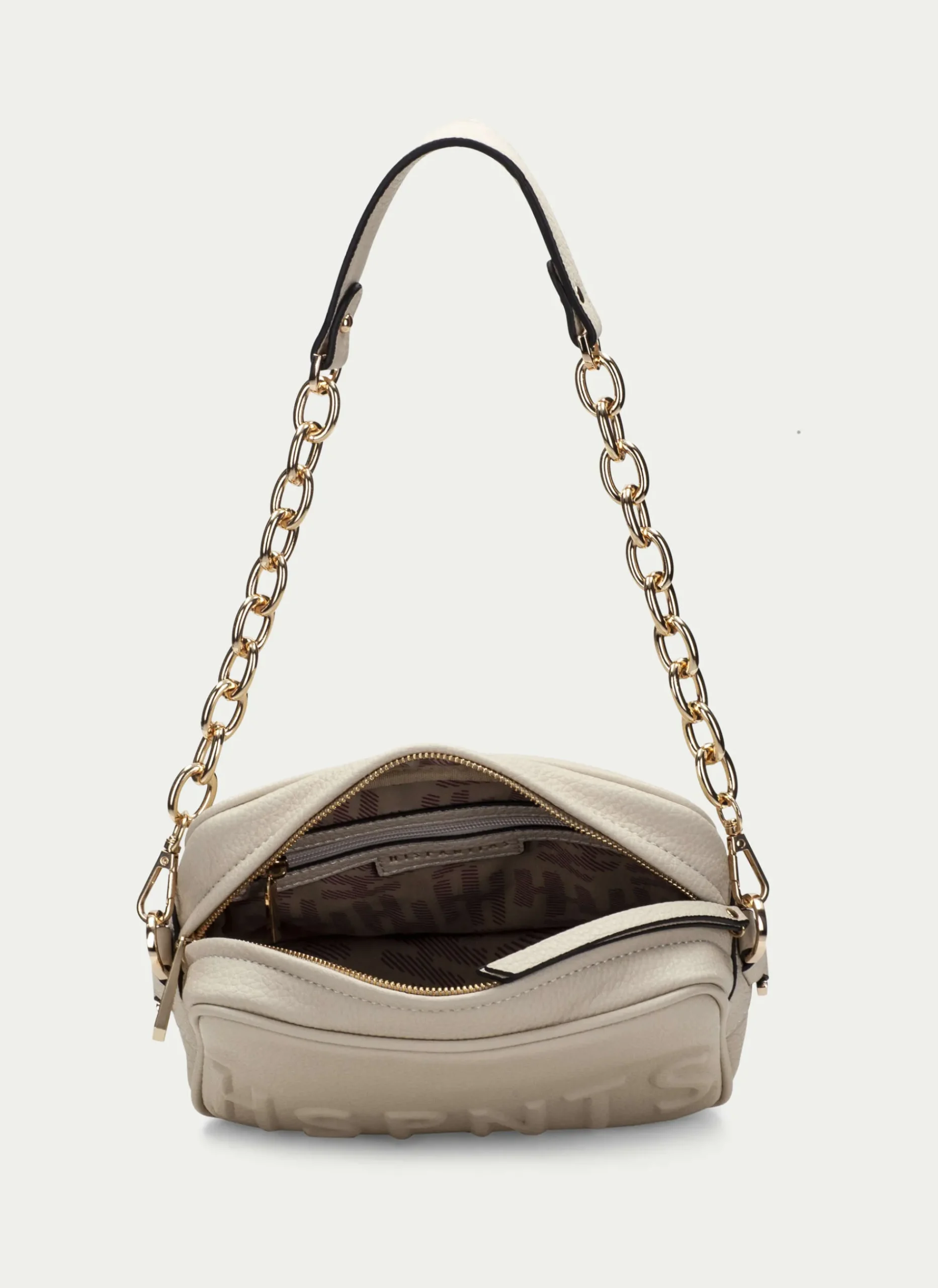 Bandolera Pequeña Con Nombre De La Marca En Consonantes Hspnts En Relieve En La Parte Frontal. Incorpora 2 Asas, Una Larga Modulable Con Altura Máxima De 72 Cm Desde El Hombro Y Detalle De Logotipo Y Otra Con Cadena Combinada. Cuenta Con Un Compartimento Interior De Gran Capacidad Y Un Cierre De Cremallera Ámplio.