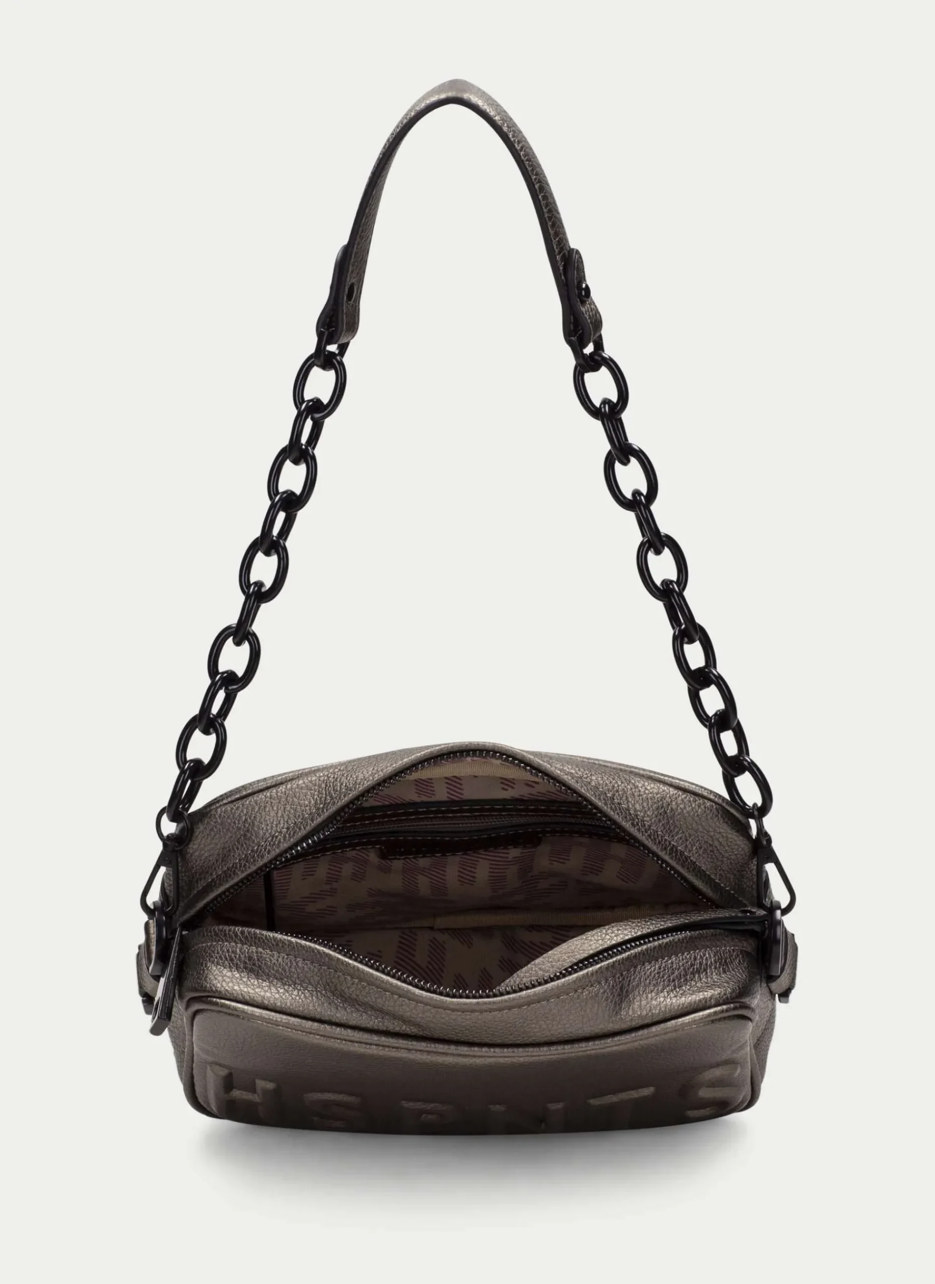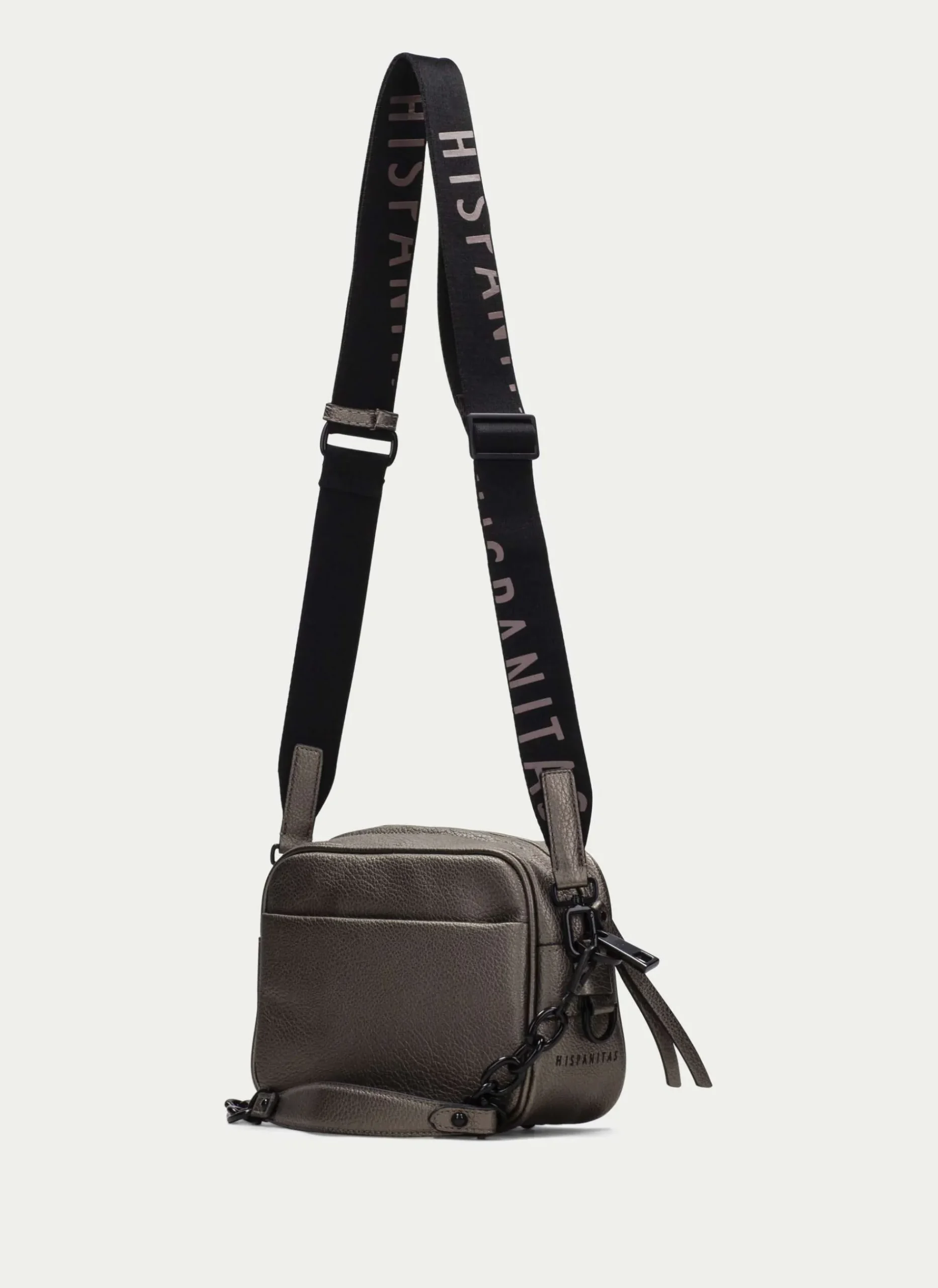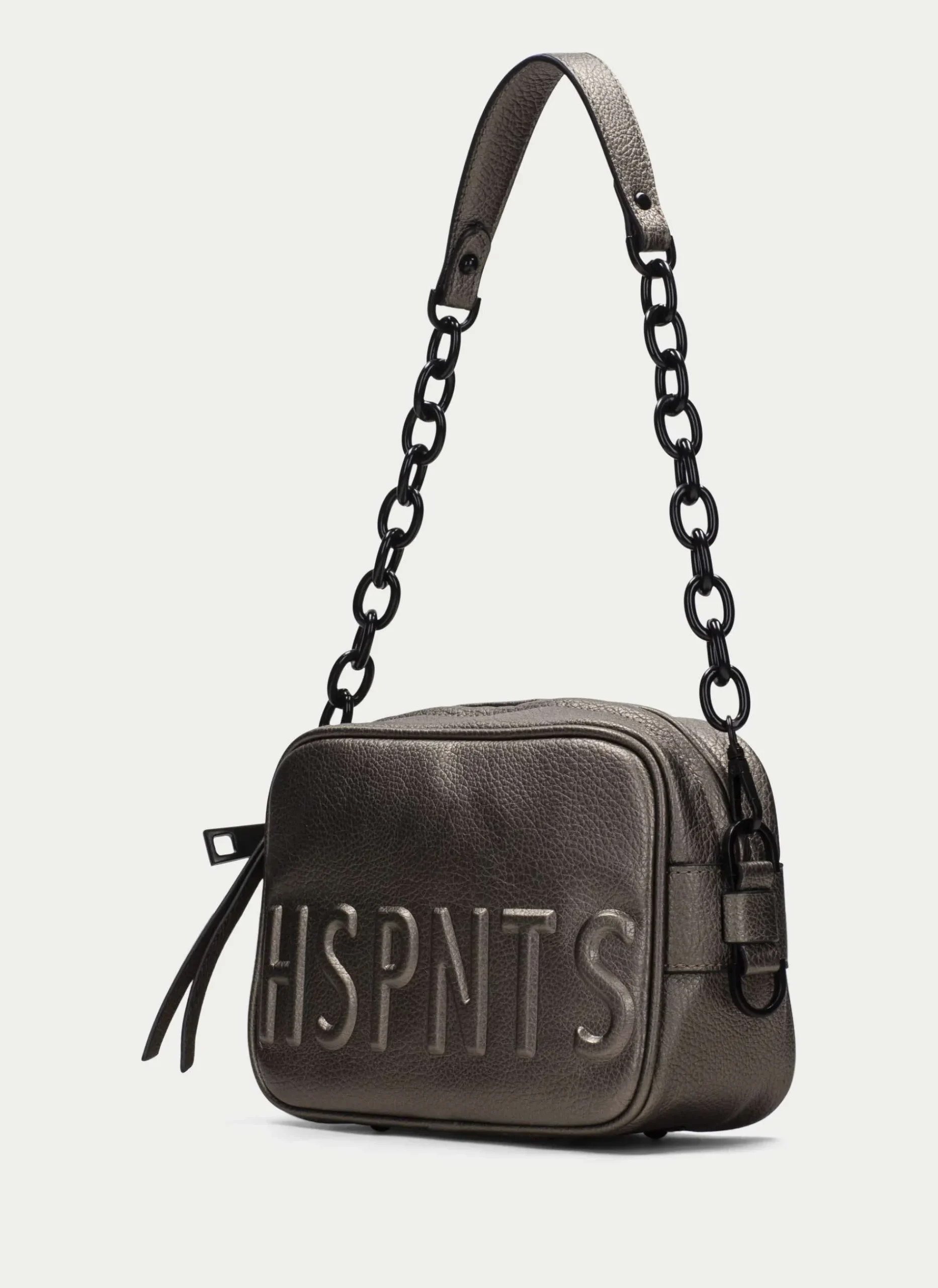 Bandolera Pequeña Con Nombre De La Marca En Consonantes Hspnts En Relieve En La Parte Frontal. Incorpora 2 Asas, Una Larga Modulable Con Altura Máxima De 72 Cm Desde El Hombro Y Detalle De Logotipo Y Otra Con Cadena Combinada. Cuenta Con Un Compartimento Interior De Gran Capacidad Y Un Cierre De Cremallera Ámplio.