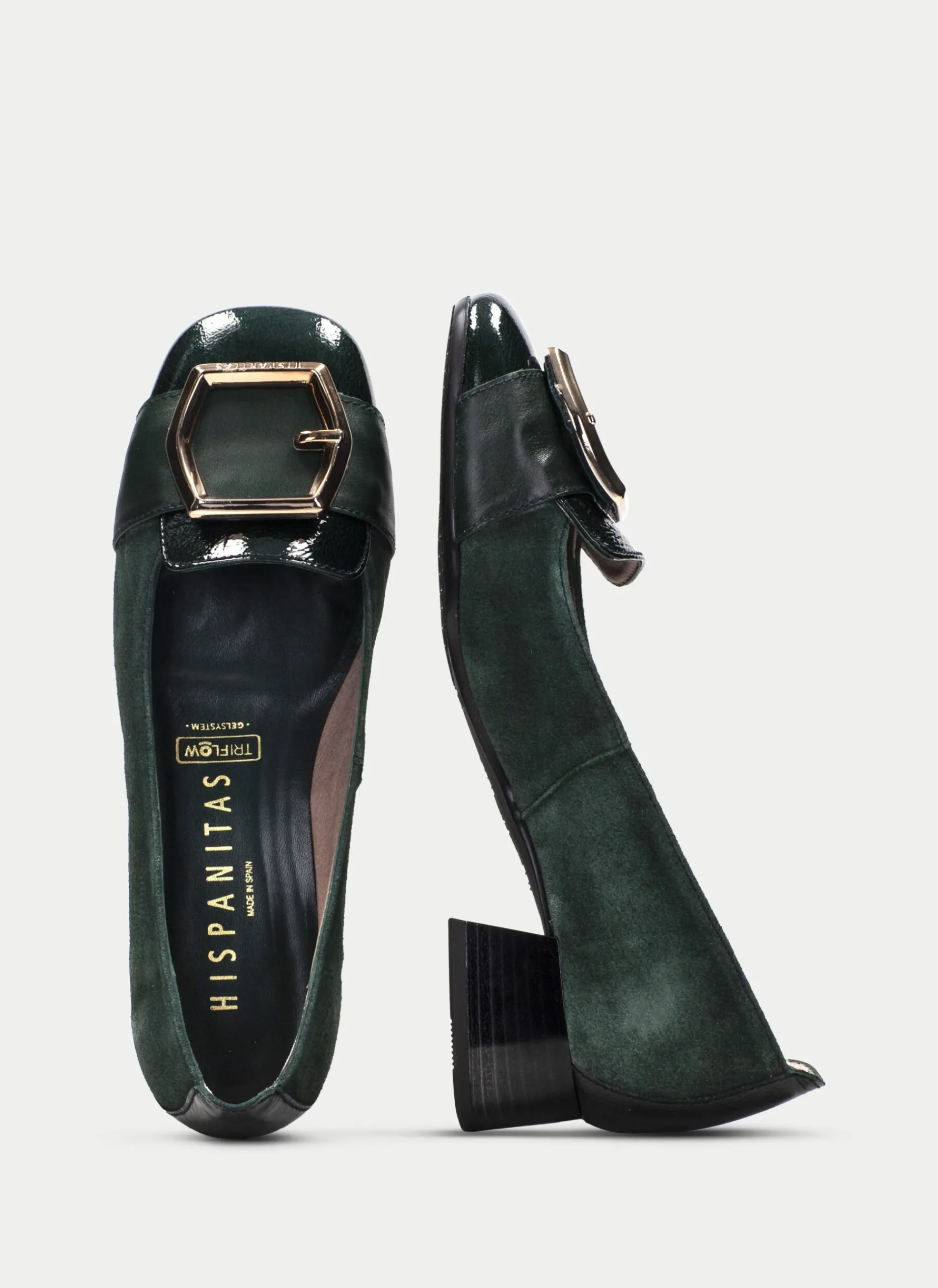 Bailarina Hecha En España Con Tacón Bloque De 3,5 Cm De Altura. Un Diseño Que Incirpora Un Maxi Adorno Estilo Hebilla En La Puntera. Este Modelo Incorpora La Tecnología Triflow, Amortigua Cada Paso Aportando Flexibilidad Y Confort En La Pisada, Gracias A Su Triple Almohadillado.