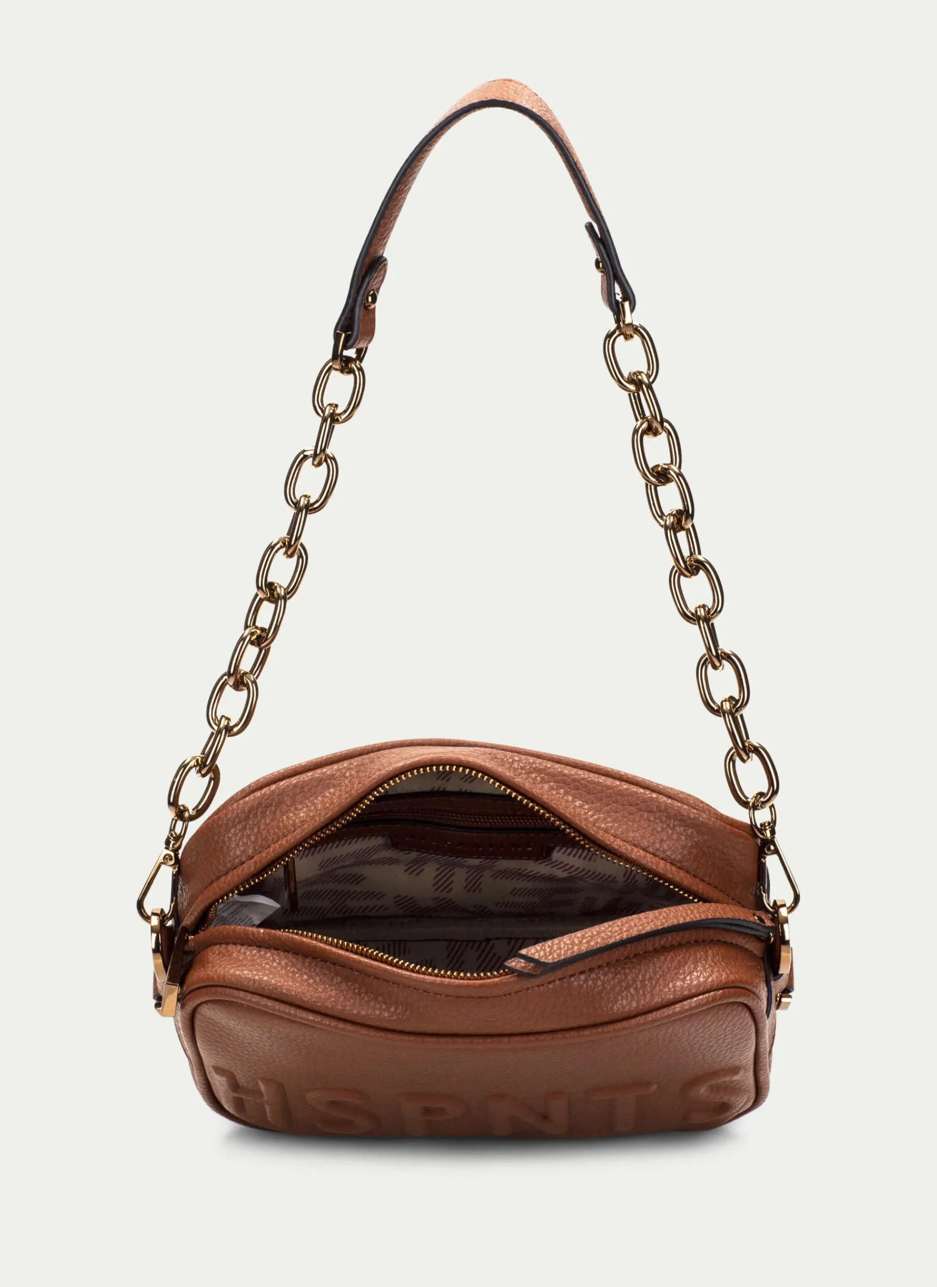 Bandolera Pequeña Con Nombre De La Marca En Consonantes Hspnts En Relieve En La Parte Frontal. Incorpora 2 Asas, Una Larga Modulable Con Altura Máxima De 72 Cm Desde El Hombro Y Detalle De Logotipo Y Otra Con Cadena Combinada. Cuenta Con Un Compartimento Interior De Gran Capacidad Y Un Cierre De Cremallera Ámplio.