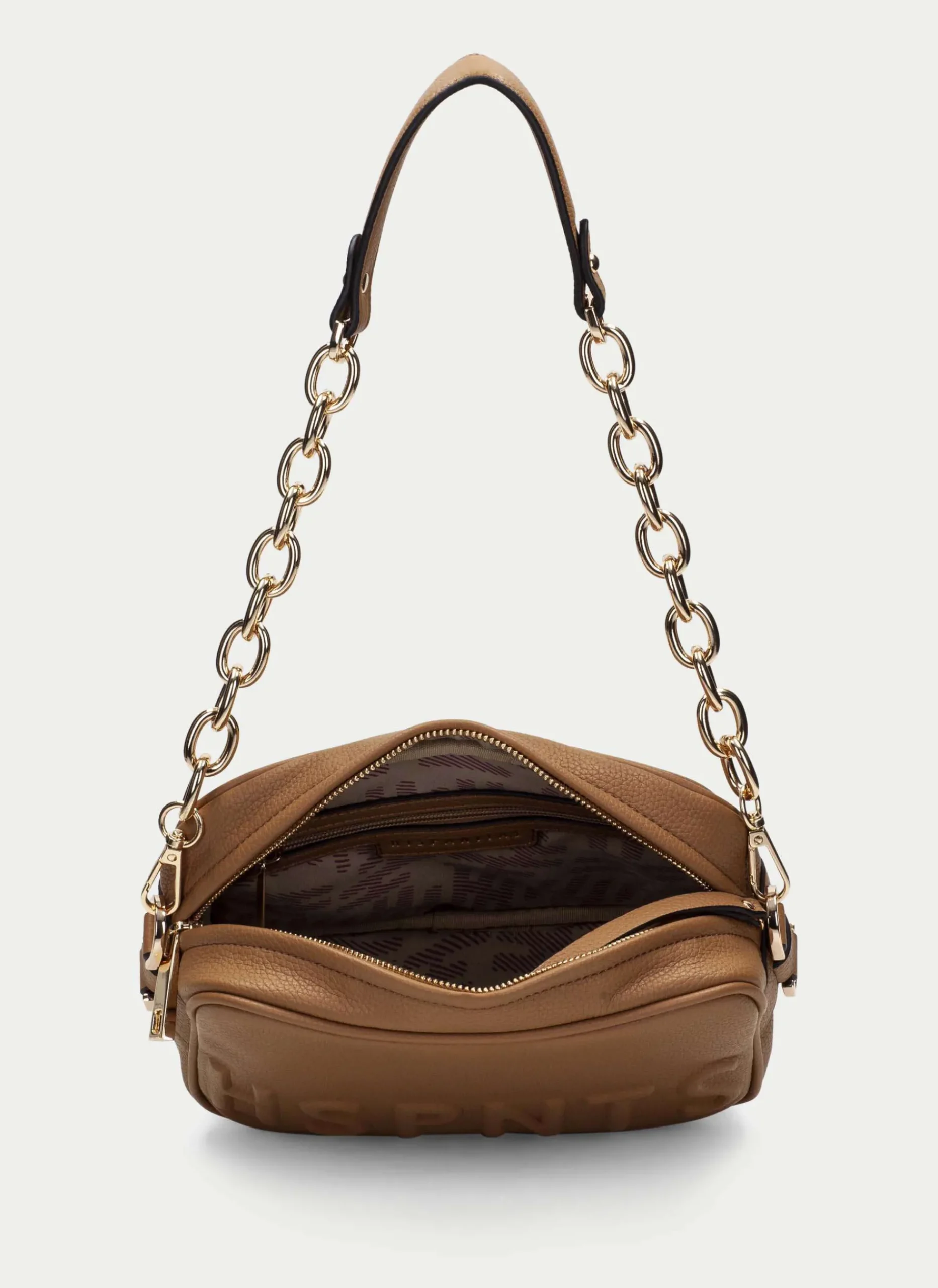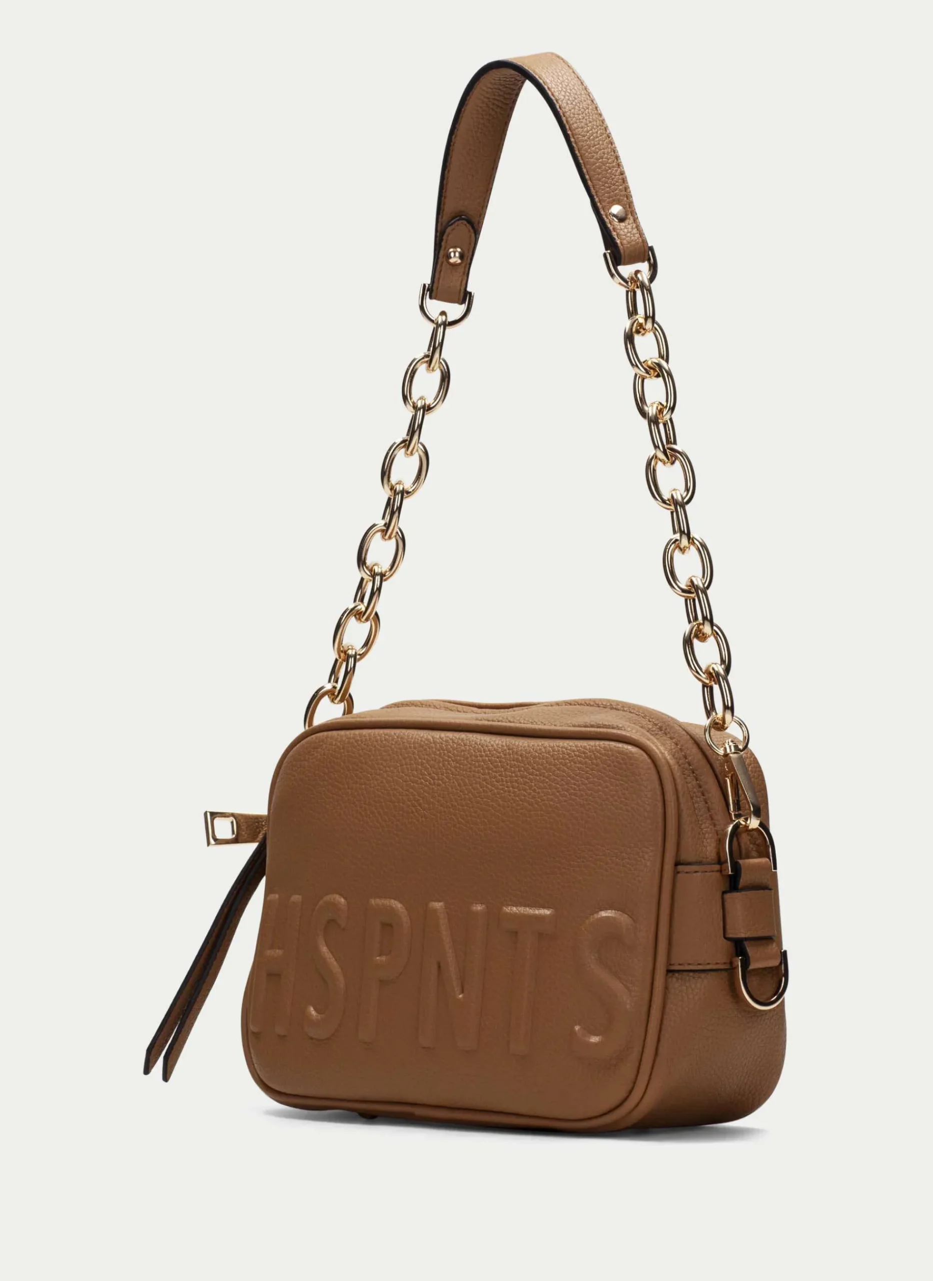 Bandolera Pequeña Con Nombre De La Marca En Consonantes Hspnts En Relieve En La Parte Frontal. Incorpora 2 Asas, Una Larga Modulable Con Altura Máxima De 72 Cm Desde El Hombro Y Detalle De Logotipo Y Otra Con Cadena Combinada. Cuenta Con Un Compartimento Interior De Gran Capacidad Y Un Cierre De Cremallera Ámplio.