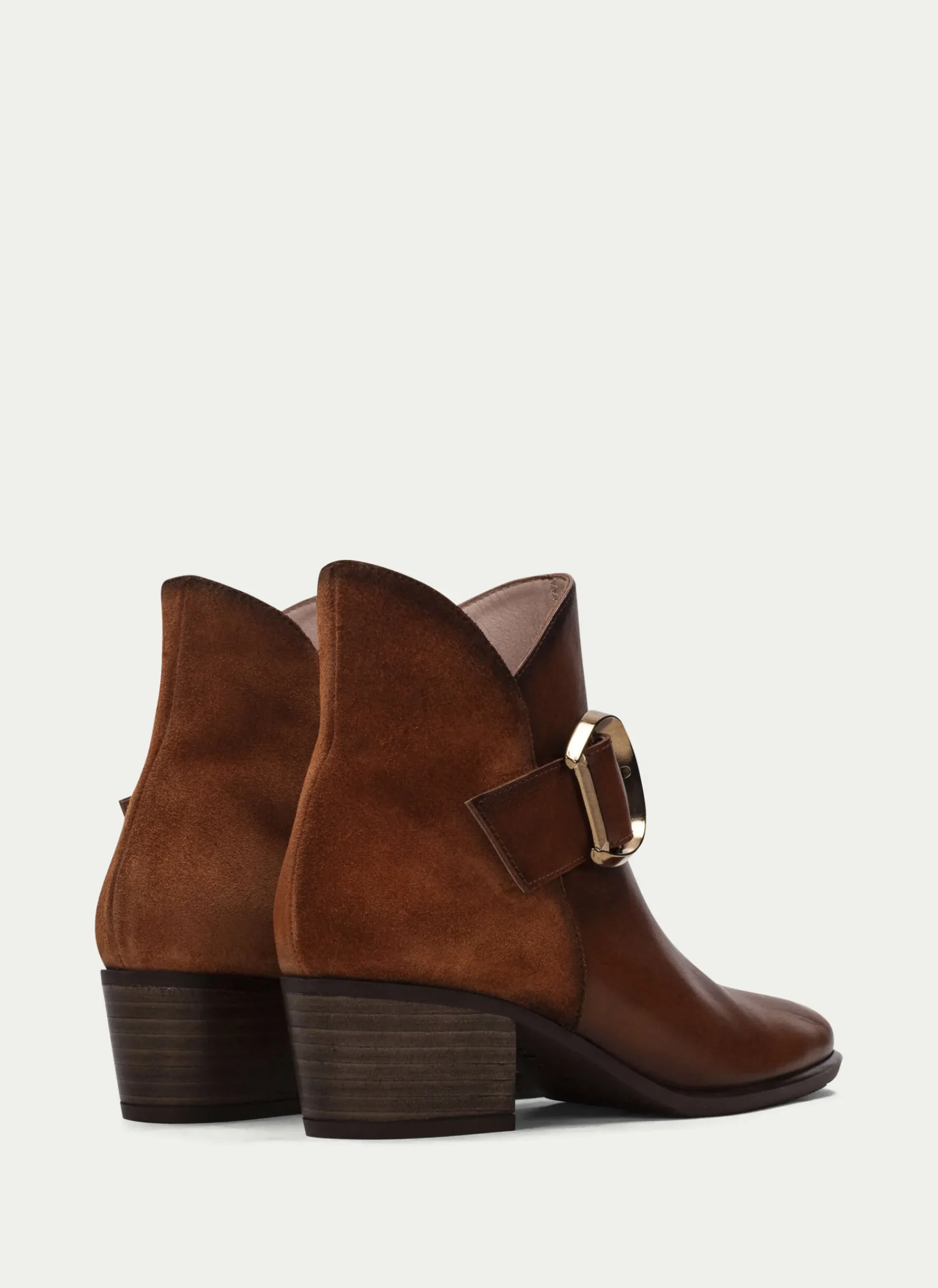 Botín De Piel Con Tacón Bloque, Detalle De Maxi Hebilla En El Lateral Y Cierre De Cremallera En La Parte Interior. Este Zapato Incorpora La Tecnología Triflow, Amortigua Cada Paso Aportando Flexibilidad Y Confort En La Pisada, Gracias A Su Triple Almohadillado.